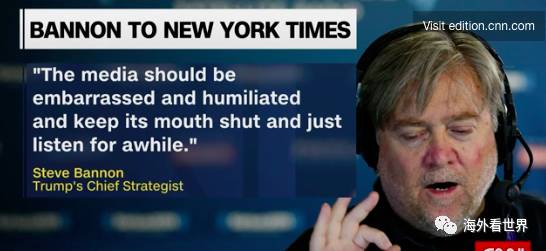 特朗普脸皮薄、爱面子,特别喜欢经常反复欣赏自己出现在媒体上的光辉形象,享受被人拥护为领袖、能人的感觉。反过来,他最不能忍的就是别人贬低自己,被和别人比较不如别人,甚至是有人凌驾于自己之上。美国主流媒体与班农厌恶由来已久。于是主流媒体就利用了特朗普的这些特点,悄无声息地进行了一场“倒班战”。从今年年初开始,各大主流媒体就争相报道班农是如何“控制”着特朗普,“控制”着白宫。说特朗普仿佛已经被架空似的,重要的决定都是班农在后面做。这个“国师”的形象被不断重复,不断刻画和加强。《时代周刊》等数家媒体更是将班农的照片放到了自己的封面上,给班农冠以“伟大的操纵者”“班农总统”等名头。一些电视评论员也经常将这样的称呼挂在嘴边。
